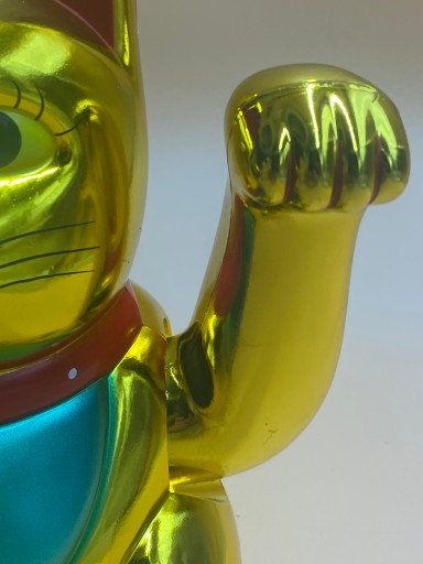W prawej łapce kota chińskiego na szczęście znajduje się stara, japońska moneta. Charakterystyczną cechą każdego kotka tego typu jest lewa łapka, która przywołuje dobre dusze do domu lub miejsca pracy właściciela.