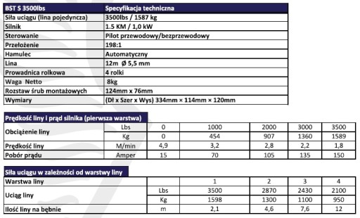 - Wymiary wyciągarki (LxWxH): 334mm × 114mm × 120mm