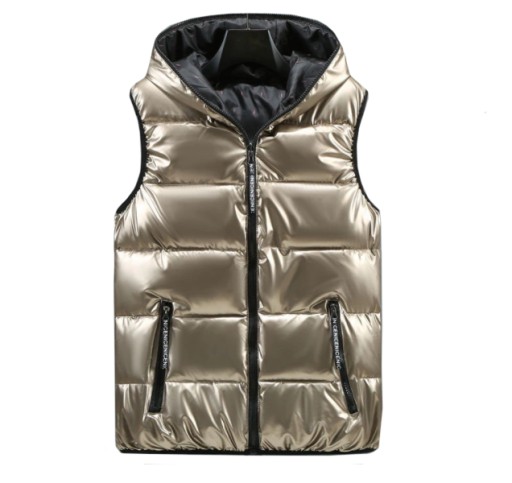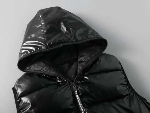 БЛЕСТЯЩИЙ СТЕГАНЫЙ ЖИЛЕТ С КАПЮШОНОМ