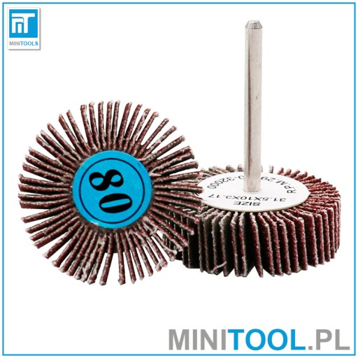 Ściernica listkowa do polerowania o granulacji 80 z trzpieniem o średnicy 3,17 mm. Ściernica trzpieniowa wykonana jest z listków ściernych ułożonych promieniście wokół osi trzpienia mocującego. Tarcza listkowa stosowana jest do usuwania rdzy z powierzchni metalowych, szlifowania, wygładzania, do obróbki drewna oraz tworzyw sztucznych. Dedykowana jest do obróbki przedmiotów nietypowych o rożnych kształtach, do powierzchni wewnętrznych lub trudno dostępnych z uwagi na to, że dopasowuje się do struktury szlifowanego przedmiotu.