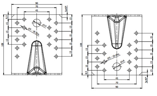 - ilość otworów -36 otworów ø5mm, 2 otwory ø14mm