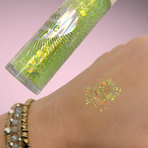 Brokat umożliwia szybkie wykonanie przepięknego makijażu oczu, twarzy, włosów lub ciała. Idealne uzupełnienie makijażu biżuteryjnego do którego możemy dodać ozdobne samoprzylepne cyrkonie lub perły. Bardzo wygodny w użyciu. Wystarczy go nałożyć opuszkami palców lub pędzlem. W zależności od pożądanego efektu możemy nałożyć jego więcej lub mniej. Kolory można również ze sobą mieszać.