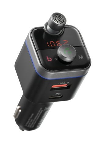 - Ekran LED wskazujący status urządzenia, parowanie BT, częstotliwość nadawania sygnału oraz napięcie w zapalniczce