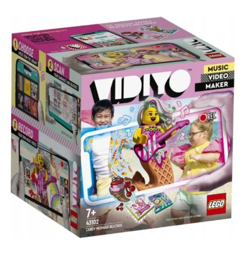 Pozwól dzieciom uwielbiającym taniec i występy przenieść się do świata pełnego teledysków. Zestaw LEGO® VIDIYO™ Candy Mermaid BeatBox (43102) urozmaici każdą zabawę. Pobierz darmową aplikację, zeskanuj figurkę popowej artystki i odkryj sceniczny wizerunek syreny. Możesz też zeskanować BeatBity, aby odblokować specjalne efekty, wyzwania i nie tylko. Dzięki temu zestawowi dzieci mogą tworzyć własne teledyski i udostępniać je innym twórcom w bezpiecznym środowisku. Zabawa w każdym miejscuDzieci z przyjemnością ozdobią model BeatBox klockami LEGO. Mogą wykorzystać elementy takie jak lody, syreni ogon lub gitara albo stworzyć własne dekoracje. W składanym BeatBoxie można przechowywać BeatBity i minifigurkę, więc zestaw doskonale nadaje się do zabrania w podróż. Twórz własne teledyskiDzięki zestawom LEGO VIDIYO dzieci mogą wcielić się w reżyserów, producentów i gwiazdy własnych teledysków podczas bezpiecznej zabawy. Pozwól im rozwinąć kreatywność przez nagrywanie teledysków pełnych muzyki, ciekawych postaci, piosenek, ruchów tanecznych i zdumiewających efektów.