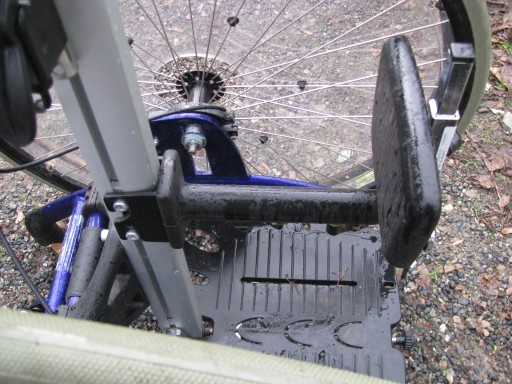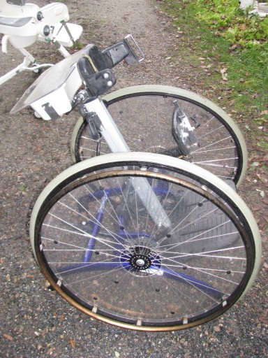 Posiada ramę z regulacją kąta pochylenia, centralny hamulec, koła na szybkozłączkach, peloty piersiowe i kolanowe oraz płytę podnóżka.