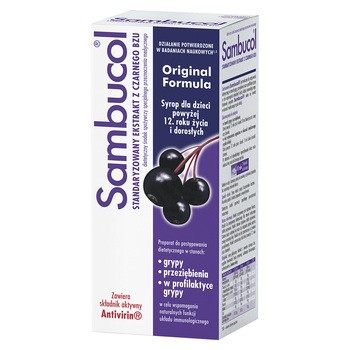 Sambucol Orginal Formula środek specjalnego spożycia. Pomocny podczas przeziębienia i grypy. Pobudza układ immunologiczny do działania i zwiększa odporność i zmniejsza ryzyko na zachorowania. Odpowiedni do stosowania dla dzieci powyżej 12 roku życia