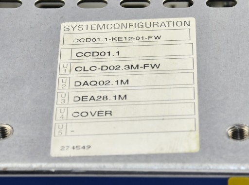 Używany sterownik o oznaczeniu: CCD01.1-KE12-01-FW, produkt firmy REXROTH. Sterownik CNC, obsadzone są w nim następujące karty: CLC-D02.3M-FW; DAQ02.1M, DEA28.1M. Pochodzi z demontażu całkowicie sprawnej maszyny przemysłowej.