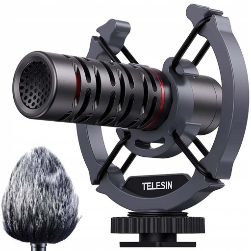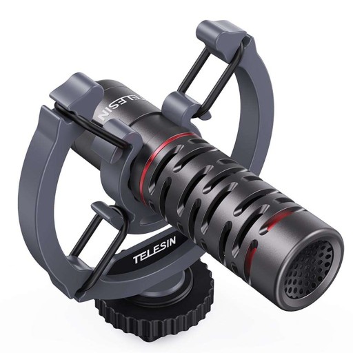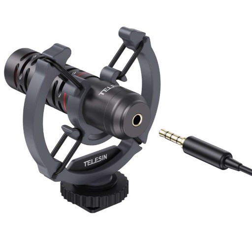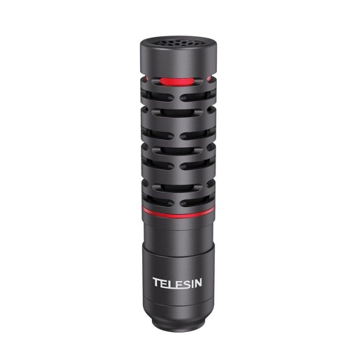 Wysokiej jakości mikrofon kierunkowy marki Telesin, z wbudowanym specjalnym filtrem tłumiącym zakłócenie, oraz osłoną przeciwwietrzną dzięki czemu potrafi nagrać dźwięk eliminując szumy i zakłócenia z otocznia. Do działania nie potrzebuje baterii, wystarczy podpiąć go do telefonu czy kamery.