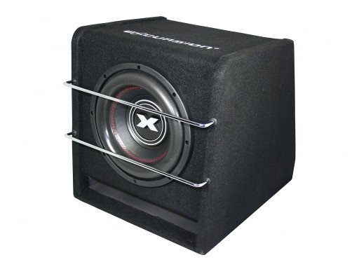 Kompletny aktywny subwoofer samochodowy z serii PX PLUG OEM UPGRADE niemieckiej marki Excursion, w skład którego wchodzi wydajny głośnik niskotonowy o średnicy 10"/25cm, wzmacniacz 1-kanałowy wraz z niezbędnym wyposażeniem regulacyjnym wbudowany w boczną ściankę obudowy oraz ręcznie montowana profesjonalna obudowa bass-reflex o objętości 30 litrów z portem szczelinowym. Obudowa została w całości wykonana z wysokiej jakości płyty MDF o grubości 22/19 mm (przednia ścianka 22 mm / pozostałe 19 mm) i w standardowym wyposażeniu posiada wewnętrzne wytłumienie watoliną akustyczną oraz 2 chromowane metalowe pręty chroniące przód głośnika przed uszkodzeniem większymi przedmiotami. Z zewnątrz obudowa została wykończona czarną tkaniną obiciową o wysokiej trwałości. W zestawie znajduje się także zdalny regulator głośności subwoofera z przewodem oraz wiązka kabli ze złączem do gniazda wejść sygnału o poziomie głośnikowym HIGH Level.