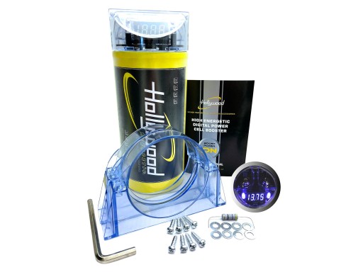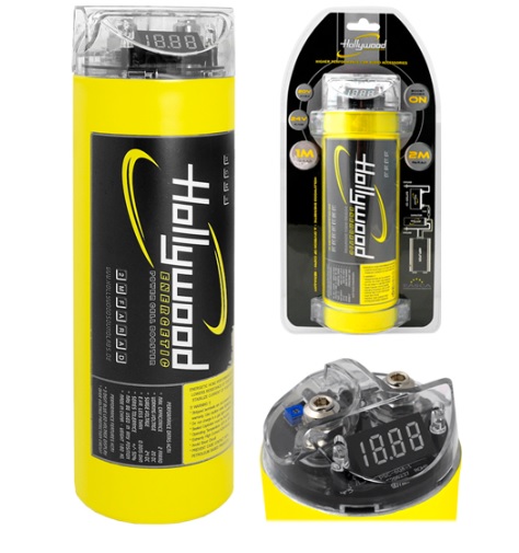 Bardzo wydajny kondensator o pojemności 6 Faradów z woltomierzem niemieckiej marki Hollywood Energetic do poprawy stabilności i efektywności instalacji zasilającej system car audio. Dzięki zastosowaniu najnowszej technologii HDFT (High Density Foil Technology) ze zwiększoną gęstością wewnętrznych folii elektrodowych możliwe było uzyskanie znacznie wyższej wydajności w porównaniu ze starszymi konstrukcjami o podobnej pojemności. Kondensator HCM-6 HDFT jest w stanie pełnić funkcję efektywnego banku energii stabilizującego impulsowe spadki i wahania napięcia w instalacjach zasilających systemy car audio o mocy do 2400 W. Wysoka wydajność przy możliwie niewielkich wymiarach kondensatora to jedne z ważniejszych parametrów w dobie coraz mniejszych i mocniejszych wzmacniaczy cyfrowych powszechnie stosowanych w instalacjach car audio. Dzięki temu Hollywood HCM-6 HDFT stwarza większe możliwości montażu w trudniej dostępnych miejscach samochodu. Likwiduje też wiele ograniczeń przeszkadzających dotychczas w tym, aby tak duży dodatkowy bank energii dla wzmacniacza mocy zawsze był zainstalowany możliwie jak najbliżej niego.