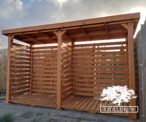 ➔ stabilność – deskowanie drewutni zostało umocowane w rowkach masywnych słupów, a całość zabudowy skręcono za pomocą specjalnych wkrętów, dzięki czemu konstrukcja jest bardzo stabilna i wytrzymała