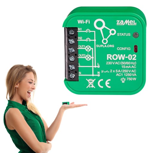 Sterownik ROW-02 umożliwia sterowanie oświetleniem za pomocą przycisków lub łączników w trybie bistabilnym. Dodatkowo dzięki wbudowanemu modułowi wi-fi możliwe jest zdalne zarządzanie oświetleniem za pomocą aplikacji na smartfonie. Urządzenie informuje o stanie oświetlenia. Użytkownik może sterować oświetleniem z dowolnego miejsca na świecie. Dzięki chmurowej aplikacji możliwe jest także automatyczne uruchomienie lub wyłączenie oświetlenia wg zapisanego na chmurze harmonogramu. Dedykowana aplikacja do pobrania z Google Play oraz App Store.