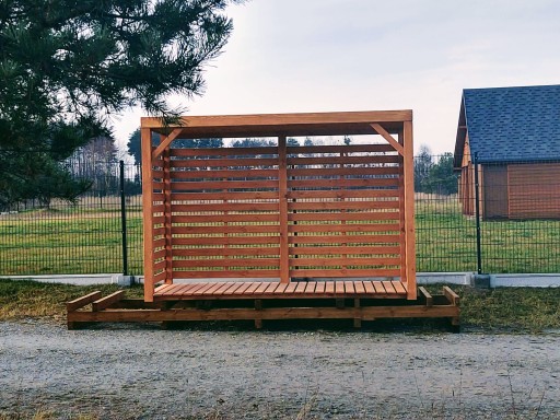 ➔ wykonanie z naturalnego drewna sosnowego – to wytrzymały, żywotny i ekologiczny materiał, który pozwala na stałe użytkowanie zabudowy na zewnątrz