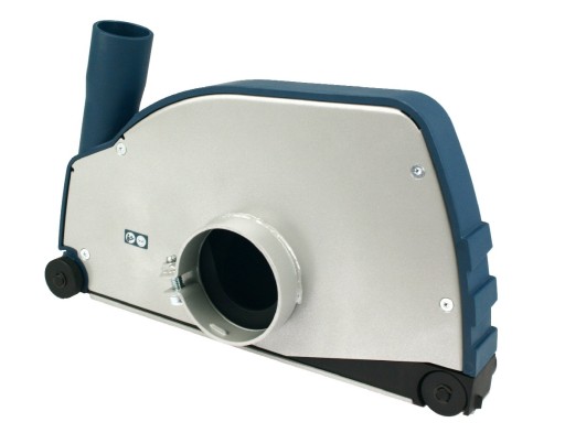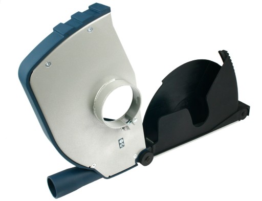 Czysta obróbka materiału - wygodne podłączenie do szlifierki kątowej i odkurzacza. Osłony GDE w górnej części zostały wyposażone w elastyczne przyłącze umożliwiające podłączenie odkurzacza przemysłowego odpowiadającego za odsysanie pyłu powstającego podczas cięcia tarczą diamentową