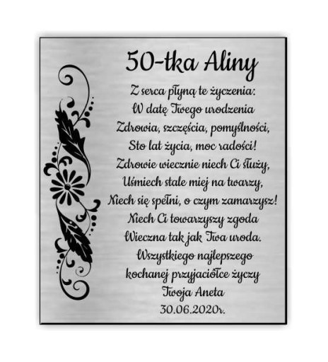 Może stanowić wyjątkowy personalizowany prezent czy grawerowaną wklejkę, np. do książki, albumu.