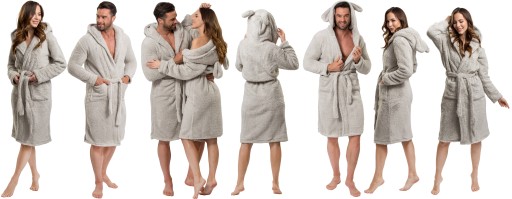 Miękki, pluszowy szlafrok. Idealny towarzysz chłodnych poranków i długich wieczorów. Obszerny kaptur oraz długość do kolan sprawiają, że świetnie się sprawdzi szczególnie jesienią i zimą. Dołączony do szlafroka pasek pozwala regulować jego szerokość.
