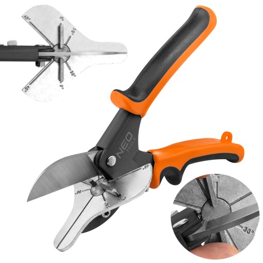 Nożyce do cięć kątowych 220 mm 01-260 marki NEO to narzędzie do cięć kątowych o długości 220 mm. Dwukomponentowy uchwyt, ostrze ze stali SK5 oraz korpus aluminiowy wpływają na trwałość nożyc. Ruchome ustawienie kąta cięcia oferuje zakres: 30, 45 i 90 stopni. Narzędzie pozwala na wygodne przecinanie listew plastikowych. Będzie niezbędne w pracy montera. Nożyce od marki NEO polecane na wiele lat użytkowania.