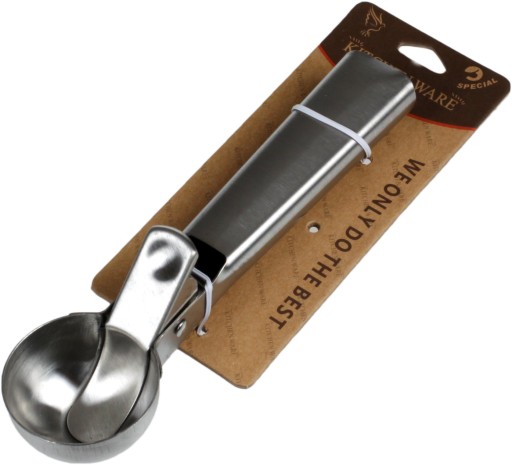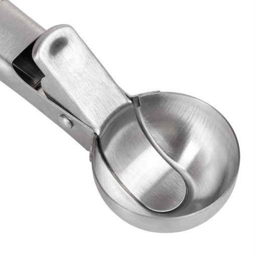 Łyżka do lodów solidnie wykonana ze stali. Dzięki niej porcjowanie lodów stanie się przyjemnością. Idealna w domowej kuchni, jak i w gastronomii. Nie przywiera - dzięki czemu wygodnie i sprawnie można porcjować nie tylko lody, ale również puree. Gdy naciśniemy na rączkę, porcja zostanie odcięta za pomocą metalowego elementu.