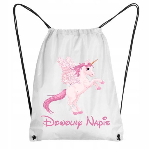 Oferujemy super worek z motywem JEDNOROŻEC z dowolnym napisem lub bez.