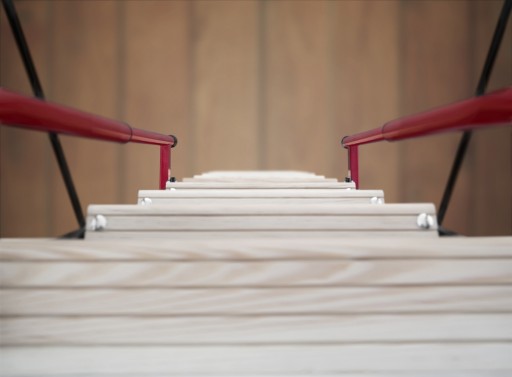 Schody Polar Plus wyposażono w dwie estetyczne, czerwone poręcze teleskopowe, dzięki którym wejście po drabince jest bardzo wygodne. Ponadto poręcze znajdują się po obu stronach, co znacząco poprawia bezpieczeństwo.