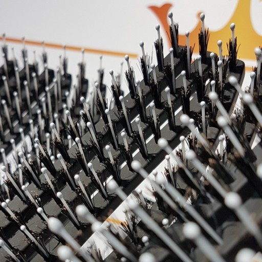 - Mieszanka włosia dzika i nylonu - W 100% czyste włosie z dzika wygładza włosy podczas stylizacji oraz nadaje im połysk i objętość. W połączeniu z nylonowym włosiem skóra głowy jest delikatnie stymulowana.