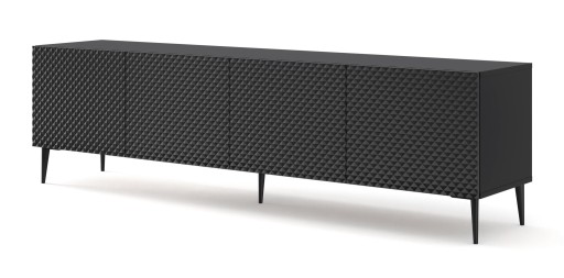 Szafka RTV Ravenna C 200 cm 4D czarny mat / czarny połysk DIAMENT na szpilkach*