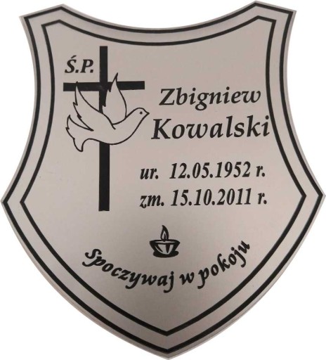 - Tabliczka wykonana z laminatu grawerskiego o grubości 1,6 mm