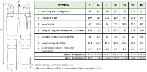 Możliwość samodzielnego wydłużenia nogawek o 4,5 cm, wystarczy odpruć jedną nić i wyciągnąć zakładkę.
