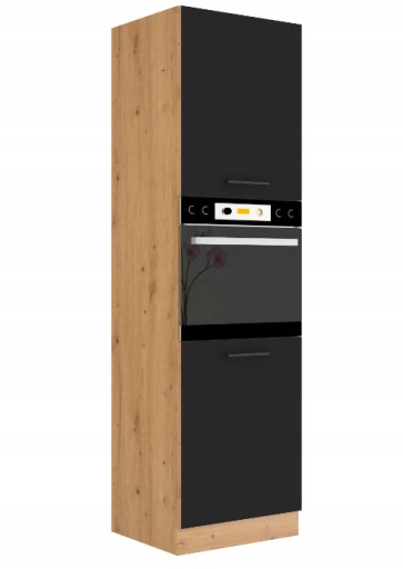 Meble kuchenne MODENA to kolekcja podążająca za najnowszymi trendami. Fronty matowe w czarnym wykończeniu z korpusem DĄB ARTISAN. Ponad 30 komponentów z serii, w tym szafki dolne z szufladami, szafki otwarte z półkami, kominy gospodarcze do zabudowy piekarnika czy różnego typu szafki wiszące.