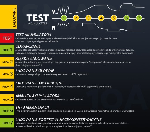 2. Prąd ładowania 10A dla 12V akumulatora, 5A dla 24V.