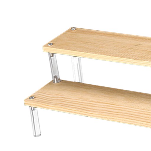 Material: these clear risers are made of acrylic and wood, transparent material looks , durable and stable to hold the exhibition.