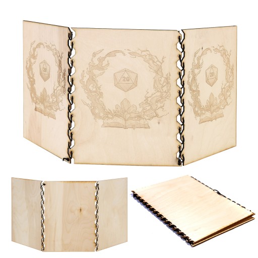 - ekran mistrza gry, który składa się z trzech drewnianych części A4 i dwóch rzemyków. Ekran należy złożyć samodzielnie, jednak nie jest to zadanie trudne i zazwyczaj nie zajmuje więcej niż dwie minuty.