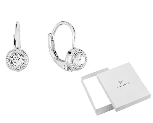 Srebrne kolczyki firmy Colibra, ozdobione ręcznie kryształami Crystallized–Swarovski, wykonane ze stopu jubilerskiego trwale posrebrzanego, zgodnie z najwyższą sztuką złotniczą oraz dbałością o detale, posiadają oryginalne metki firmowe.