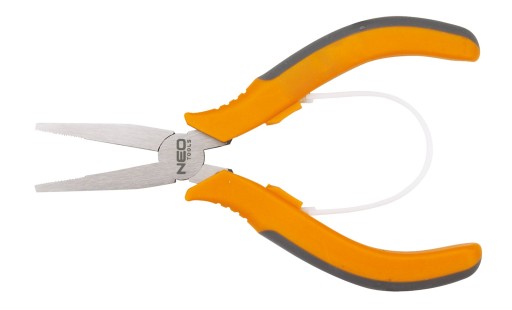 Szczypce precyzyjne płaskie NEO o wymiarze 130 mm. Długie, płaskie, ząbkowane szczęki zapewniają mocny chwyt. Wytrzymała nylonowa sprężyna ułatwia pracę. Dwumateriałowa, ergonomiczna rękojeść podnosi komfort użytkowania. Jakość narzędzia potwierdzona certyfikatem TÜV i 25-letnią gwarancją producenta.
