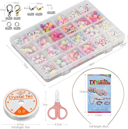 Zawarto opakowaniaZestaw zawiera 450 koralików 1 noyczki dziecice 1 opask na czoo 1 instrukcj obsugi i 1 torb na przywieszk. Jest to idealny garnitur. Wysokiej jakoci materiayWysokiej jakoci materiay akrylowe pikne ksztaty ywe kolory nie blakn niska waga przyjemna w noszeniu i duga ywotno. Róne stylePery maj ksztaty kwiatów liter cyfr pere motyli owoców gwiazd i serc. Dostpne s róne style speniajce róne wymagania produkcyjne. atwy montaKada pera ma otwory do atwego nawlekania oraz inn biuteri i akcesoria które idealnie nadaj si do produkcji naszyjników bransoletek i innych prac rcznych. Ekskluzywne prezentyKombinezony s doskonaym prezentem dla maej dziewczynki. Mona nie tylko tworzy ekskluzywne bransoletki naszyjniki i opaski na czoo ale równie suy jako rekwizyty do nauki dla rodziców i dzieci w a kreatywno dzieci trenowa swoje praktyczne umiejtnoci i cieszy si szczliwym czasem dla rodziców i dzieci.