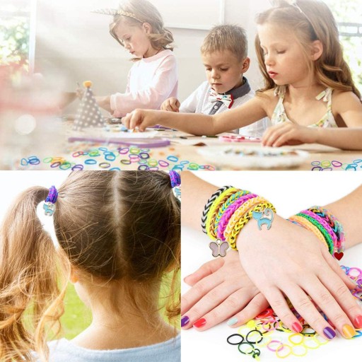 628 szt. gumowych opasek 600 sztuk wysokiej jakoci gumowych tam krosnych 12 szt. klipsów S 10 sztuk wisiorka 5 sztuk breloczków 1 szt. krosna Y 1 szt. szydeka bez deski krosowej. Kolorowe tamy krosne premium Stwórz kreatywno. Ten zestaw krosna zawiera 600 szt. kolorów bardzo elastycznych i wytrzymaych gumek dzieci mog swobodnie wykorzysta swoj wyobrani i kreatywno aby tworzy wasne rkodzieo. Nie jest atwa do rozdarcia poniewa elastyczno i wytrzymao gumowej tamy s doskonae. Wielofunkcyjny zestaw krosny Wicej ni zabawa Ten zestaw do produkcji bransoletek gumowych nie tylko odprowadza dzieci od elektroniki ale take wymaga koncentracji i rozwija ich zdolnoci artystyczne. Mona samodzielnie wykona wiele gadetów takich jak bransoletki naszyjniki piercionki i tak dalej. Cieszc si niekończc si zabaw poprawiaj równie swoje praktyczne umiejtnoci i postrzeganie kolorów. Idealny prezent Kolorowe gumowe tamy to idealny prezent na urodziny dziewczt i dzieci lub Boe Narodzenie. Zestaw do produkcji gumowej bransoletki lepiej pomoe dzieciom nauczy si organizowa i pakowa swoje rzeczy oraz poprawi kreatywno i skupienie dzieci. Przenone pudeko do przechowywania Trzyma wszystkie kreacje nasze gumowe tamy krosne s wyposaone w pudeko do przechowywania wszystkich gumek. Z przenonym schowkiem pomaga w rozwijaniu nawyku przechowywania dzieci.