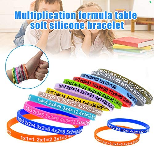 Wysoka jako nasze bransoletki s wykonane z wysokiej jakoci mikkiego silikonu. Te ywe kolory bransoletki s mikkie w dotyku i wygodne w noszeniu co moe zapewni du elastyczno i rozcigliwo podczas dugiego noszenia. Opakowanie zawiera Jedno opakowanie zawiera 12 sztuk silikonowych bransoletek. W zestawie 12 rónych kolorów. Unikalny design Stoliki mnoeniowe drukowane na opasce idealne dla dzieci aby nauczy si stoów mnoenia. Lekki Przenony do przenoszenia po prostu no na nadgarstku naucz si matematyki zawsze i wszdzie. Idealny prezent dla dzieci odpowiedni na urodziny Boe Narodzenie Nowy Rok itp.