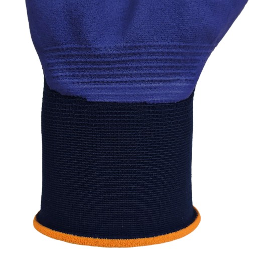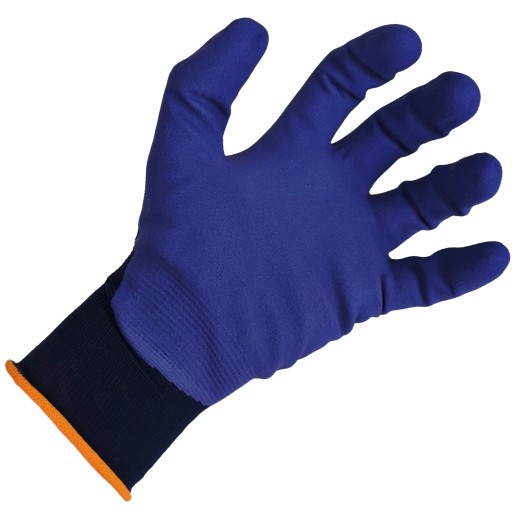 - Strona wewnętrzna/chwytna: Powlekane wysokiej jakości niebieską mikropianką nitrylową z gumy nitrylowo-butadienowej (NBR)