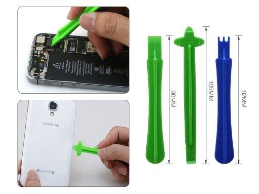 - 1x cienki, stalowy cienki otwierak do obudów (jedna końcówka V, druga U)