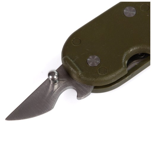 Wzbogacony o przydatne funkcje: korkociąg, szydło, otwieracz do butelek i konserw, klucze oczkowe oraz śrubokręt płaski.