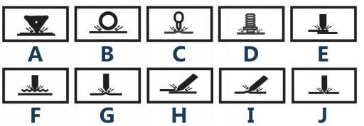 E - Zgrzewanie jednostronne | F - Zgrzewanie drutu falistego | G - Wtapianie nierówności |