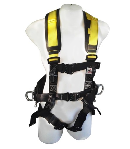 Podstawowe elementy to: pasy barkowe, pasy udowe i uprząż biodrowa. Szelki posiadają dwa punkty zaczepowe umożliwiające przyłączenie do nich systemu zabezpieczającego przed upadkiem z wysokości oraz przednią klamrę zaczepową składającą się z 2 taśm poliestowych, służącą do stosowania jedynie jako uprząż biodrowa zgodnie z EN 813 (zabraniania się dołączania do tej klamry sprzętu chroniącego przed upadkiem z wysokości )