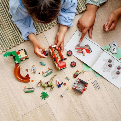- Zestaw LEGO® Jurassic World Ucieczka stygimolocha (76939) dostarczy mnóstwa emocji maluchom, które nie mają jeszcze doświadczenia z klockami LEGO — są w nim dinozaury, terenówka i domek na drzewie.