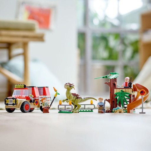 - W domku na drzewie, który jest też stanowiskiem obserwacyjnym, dzieci znajdą łóżko, umywalkę, toaletę, drabinę, a nawet zjeżdżalnię dla małego ankylozaura Bumpy’ego! W komplecie jest też łatwa do zbudowania terenówka z odłączaną klatką dla stygimolocha.