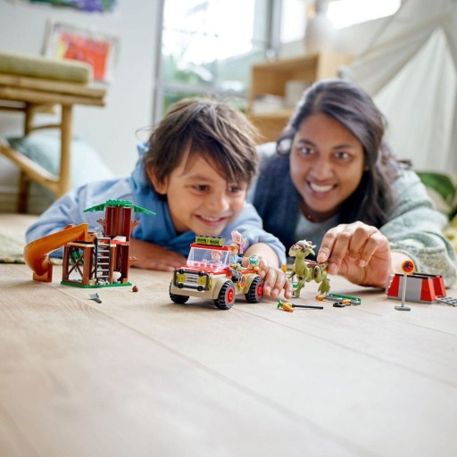 - Zestaw z Obozem Kredowym z Parku Jurajskiego zawiera trzy minifigurki: Bena, Brooklynn i Claire Dearing. W pudełku jest też stygimoloch i mały ankylozaur Bumpy, więc dzieci mogą do woli bawić się w odgrywanie ról.