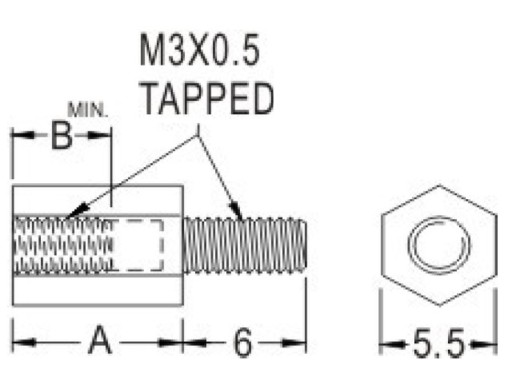 - Głębokość gwintu wewnętrznego: (B) 6mm Min*