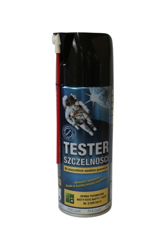 TESTER SZCZELNOŚCI - to profesjonalny środek do badania szczelności ciśnieniowych instalacji gazowych. Tester zawiera glikol propylenowy stanowiący jednorodną ciecz. Innowacyjność opakowania 400 ml polega na tym, że glikol znajduje się w worku umieszczonym w butli aerozolowej. Gazem pędnym jest sprężone powietrze znajdujące się między workiem a ścianką butli. Wsad preparatu jest niepalny, niewybuchowy oraz nieszkodliwy dla powierzchni lakierowanych. Zaletą testera jest jego biodegradowalność(wsad biodegradowalny, aerozol napełniony CO2).