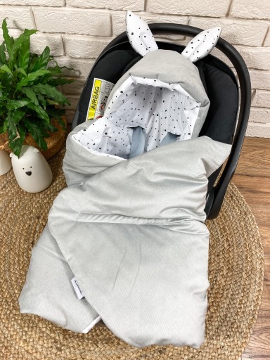 Otulacz/kocyk do fotelika z kapturkiem- bawełna premium + velvet