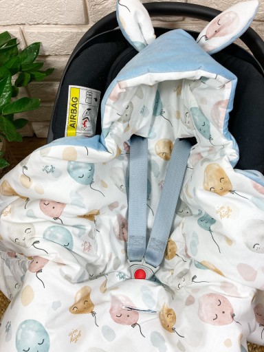 Śpiworek idealnie sprawdzi się na podczas jazdy samochodem oraz wózkiem. Kapturek dodatkowo chroni główkę przed wiatrem.