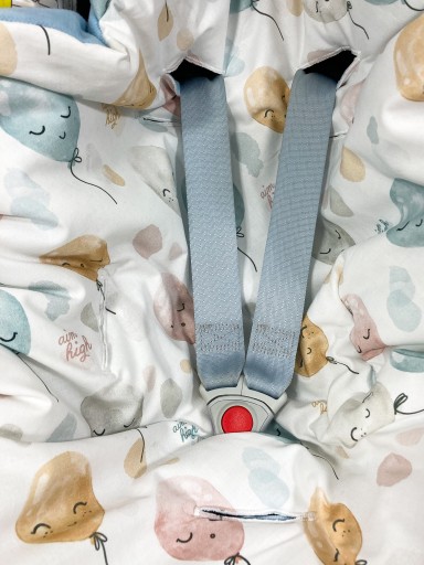 Śpiworek posiada wycięcie na pasy, dzięki czemu nie musimy rozpinać maluszka, aby go odkryć. Produkt zapinany na rzepę, dzięki czemu można odkryć całe dziecko podczas jazdy lub, gdy jest zbyt gorąco, a jednocześnie niemowlę się nie odkrywa.